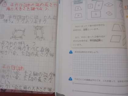 (下)算数科で、平行四辺形の特長について勉強しています。