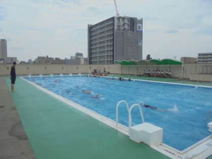 3・4年生が、一緒にプール水泳をしています。