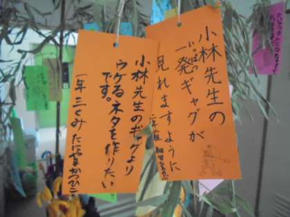 (下)2年2組小林学級前に飾られている七夕の願い事です(笑)