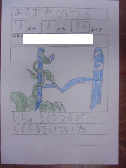 (下)朝顔の鶴の様子を描いています。