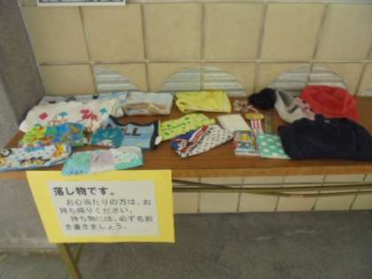 1学期に届いた落とし物です。玄関入口に置いていますので、心当たりのある方はお持ち帰りください。