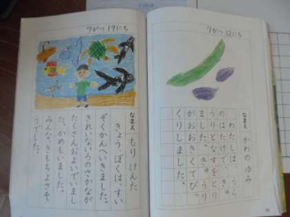 (上・中)絵日記の書き方を勉強しています。