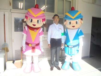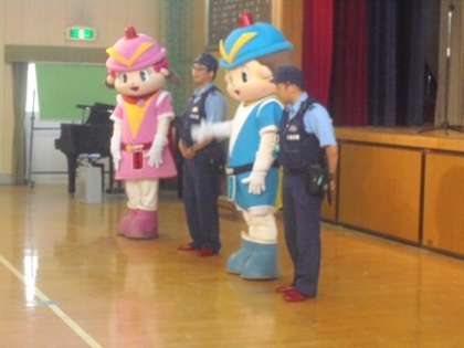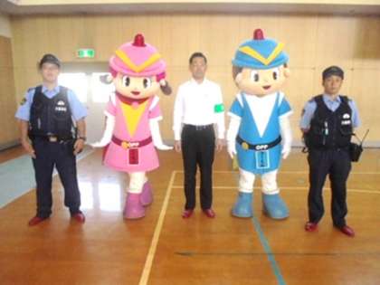 (中)三宅課長および浪速警察署の方とフーくん、ケイちゃんです。