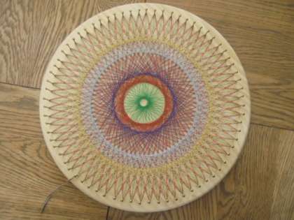 (下)糸かけ素数曼荼羅を作りました。素数の数に糸をかけていくと幾何学的な模様になるものです。