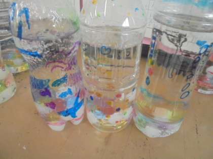 (下)図画工作科の作品、「のぞいてプヨプヨ」です。