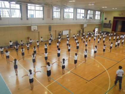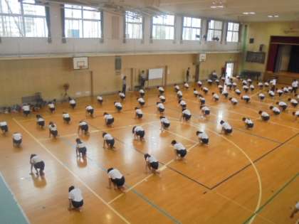 運動会の組体操の練習です。さすが高学年、張り切っています。