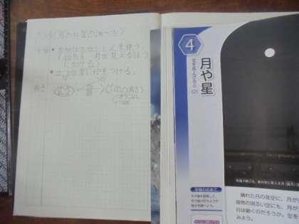 (上)理科の学習です。「月や星」について勉強しています。