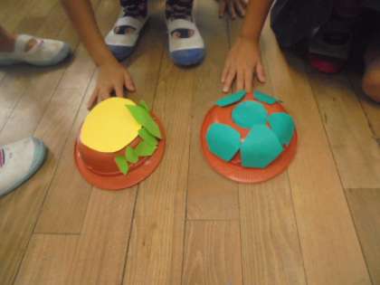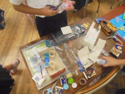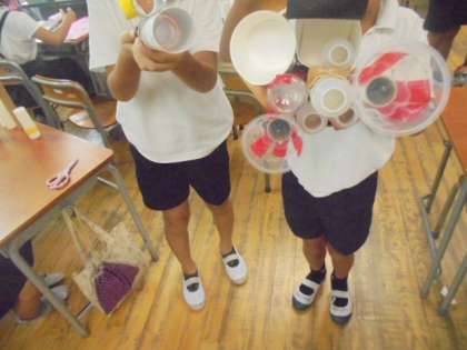おもちゃが次々と完成しています。教室に入ると、「見てー」と呼んでくれました。
