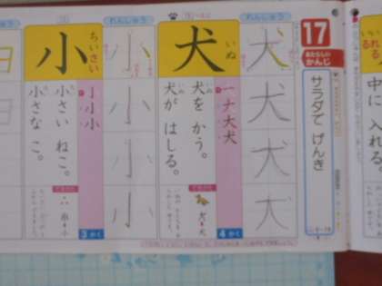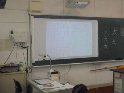 (上・中)書画カメラで漢字をわかりやすく教えています。