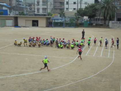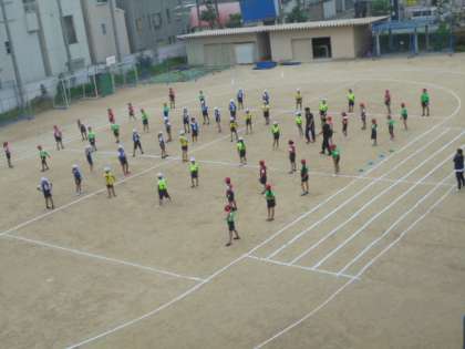 運動場で、リレーの練習をはじめました。