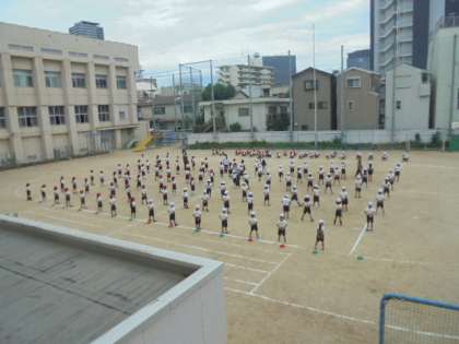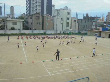 運動会ダンスの練習です。今日が、運動場デビューです。