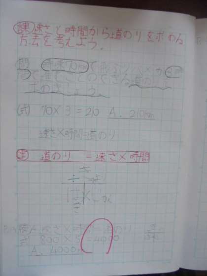 (上)算数の学習です。「速さ」について勉強しています。