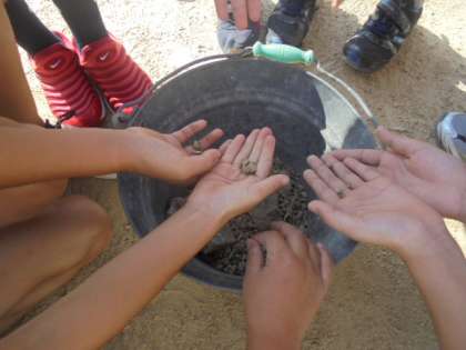 今朝は、全員で運動場の小石を集めました。運動会の練習や本番で、誰ひとりけがをしませんように!最後は、たくさん集まりました。