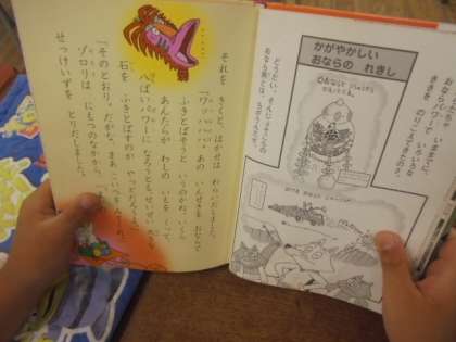 教室で本を読んでいます。「かいけつゾロリ」は人気があります。