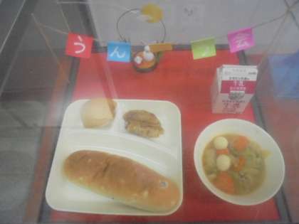 今日の献立は、あげギョーザ、中華煮(うずら卵)、なし(豊水)、パン、牛乳です。