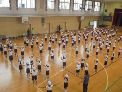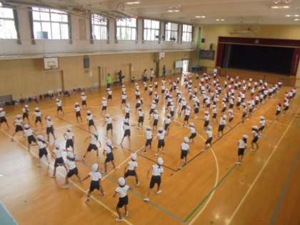 体育館で、ダンスの練習です。「USA」コールが響いています。