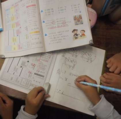 算数の学習をしています。みんなで教え合ったり、発表しあったりしています。