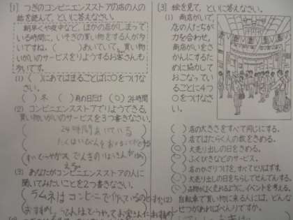 (上)社会科で、「お店で働く人々」について勉強しています。