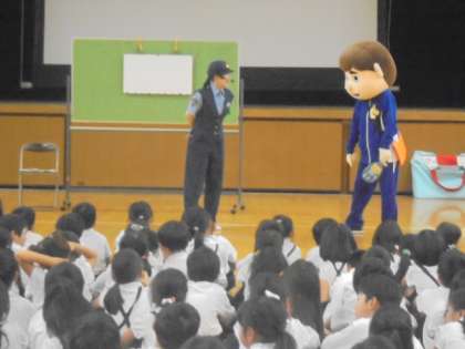 大阪府警察本部より生活安全指導班がお越しくださり、1・2年生の子どもたちへ「知らない人についていったらダメ」「「車に誘われても、乗ったらダメ」など、大切なことを教えてくださいました。寸劇やロールプレイ、DVD,クイズなど、とても優しく、わかりやすく教えていただき、子どもたちはよく理解しました。保護者の皆様もお越しくださって、一緒に学習しました。ぜひ、お家でもお話しください。