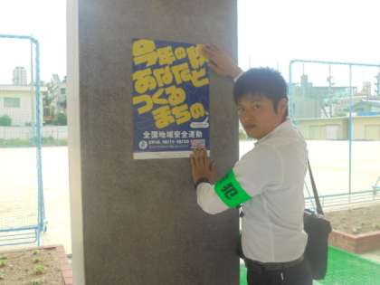 (下)全国地域安全運動のポスターを貼っていただきました。