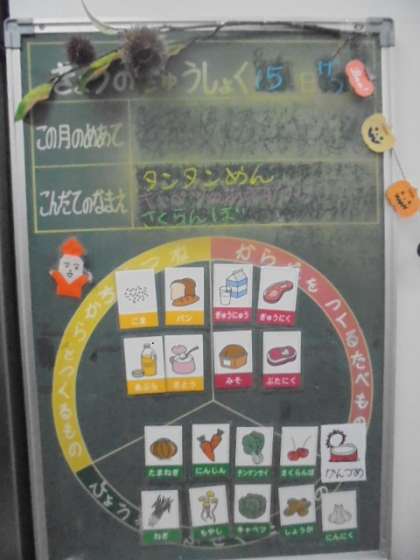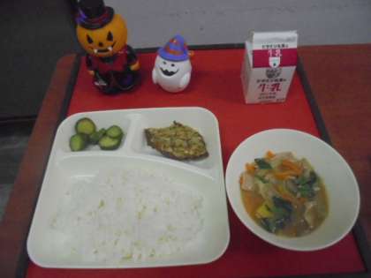給食調理員の皆さんが、ハロウィンの飾り付けをしてくださっています。子どもたちは、大喜び。いつも安全で、おいしい給食、さらにプラスアルファの楽しみを提供してくださり、ありがとうございます。