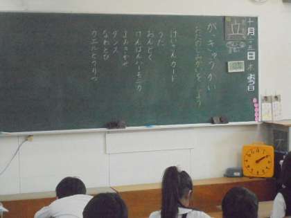 (下)学級会で、おたのしみ会について話し合っています。