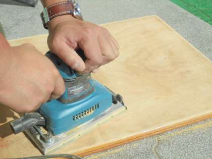 管理作業員の小林さんが、子どもたちの机の天板を修繕してくださっています。ていねいな作業、ありがとございます。