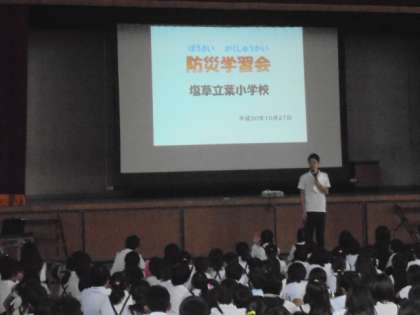 今日は、土曜授業として、防災体験教室を行いました。浪速区役所および浪速消防署の協力のもと、予定通りプログラムを実施しました。保護者の皆様も、ご参加くださり、ありがとうございます。