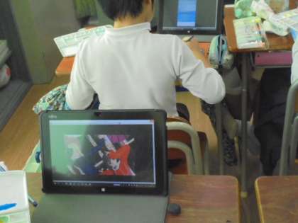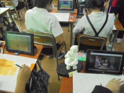 タブレット端末を使って、図画工作に取り組んでいます。