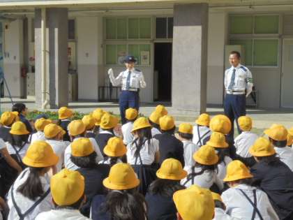 浪速警察署のご協力により、安全で正しい自転車の乗り方について、全児童が学びました。交通総務課の舞田様、松田係長様、ご指導くださり、ありがとうございました。