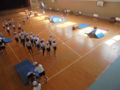 (下)跳び箱の台上前転をしています。