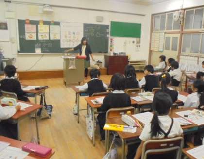 (上・中)栄小学校 四條栄養教諭のお話です。
