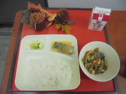 今日の献立は、さごしのおろしじょうゆかけ、五目豆、はくさいの甘酢あえ、ごはん、牛乳です。