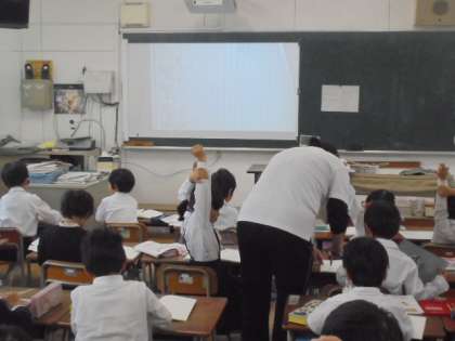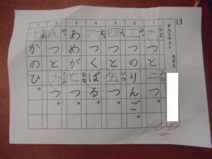 (中)算数の勉強中。先生がノートに〇をつけています。