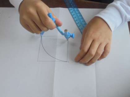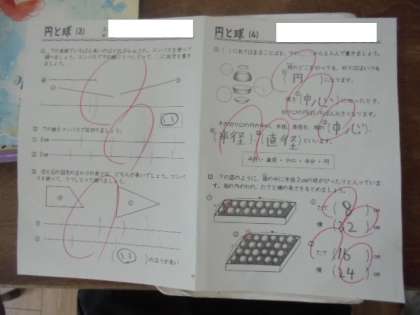算数「円と球」の勉強です。コンパスを上手に使っています。