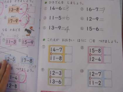 (下)算数のひき算です。