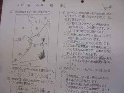 (上)社会科のテストをしています。