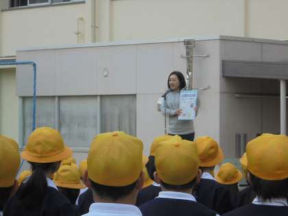 今朝の全校朝会です。