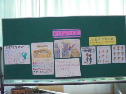 学校図書館補助員の小前先生が、学年に応じた本を紹介してくださっています。楽しいクイズもあります。