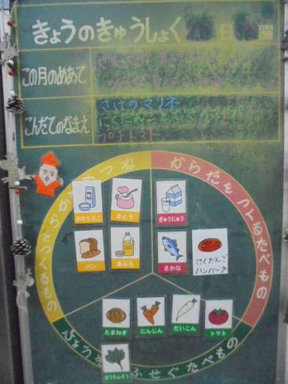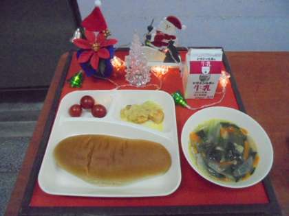 今日の献立は、さけのマリネ、肉だんごと麦のスープ、プチトマト、パン、牛乳です。