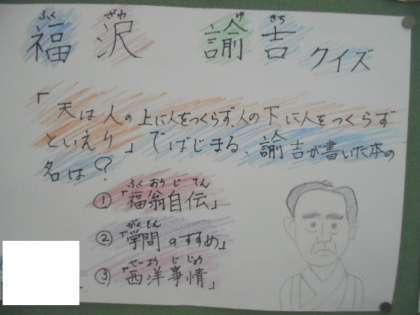 図書委員会の子どもたちが、おすすめの本にちなんだクイズを作ってくれました。