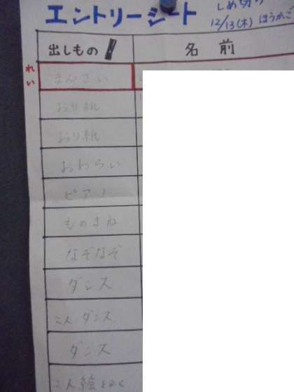 (下)お楽しみ会の「エントリーシート」です。本当に、楽しみです。