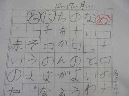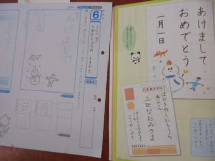 (下)年がじょうの書き方を勉強しています。