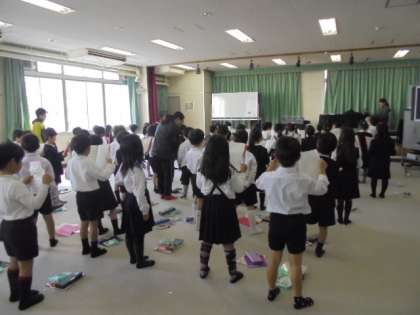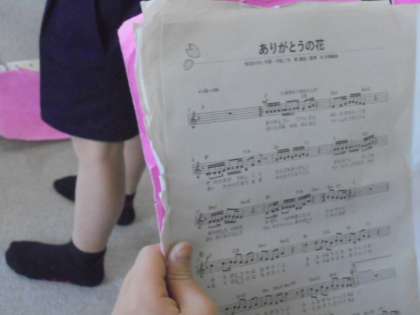 音楽室で合唱「ありがとうの花」を楽しんでいます。