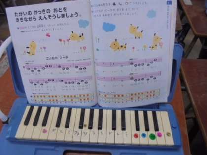 (上・中)「こいぬのマーチ」を楽しく演奏し、歌っています。