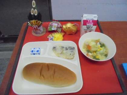 今日の献立は、あじのレモンマリネ、スープ煮、固形チーズ、パン、牛乳です。