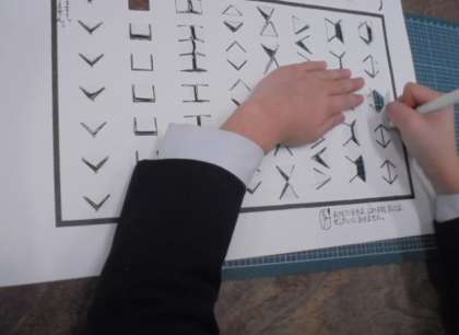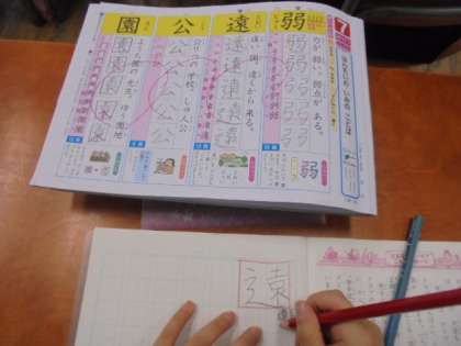 (下)図画工作科で、カッターの安全な使い方を練習しています。