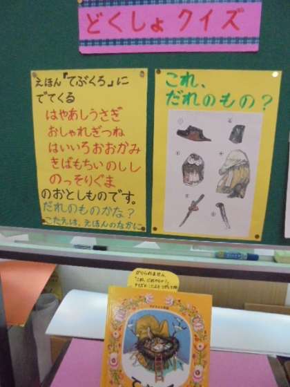図書館補助員の小前先生が、楽しいクイズを作ってくださっています。