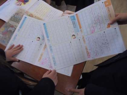 道徳科の学習です。友だち同士で、意見を発表しています。