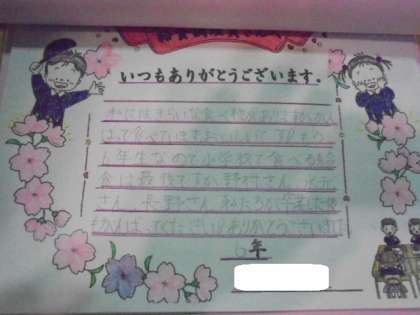 給食調理員の皆さんへ、全学級の子どもたちが書いたお礼の手紙をお渡ししました。